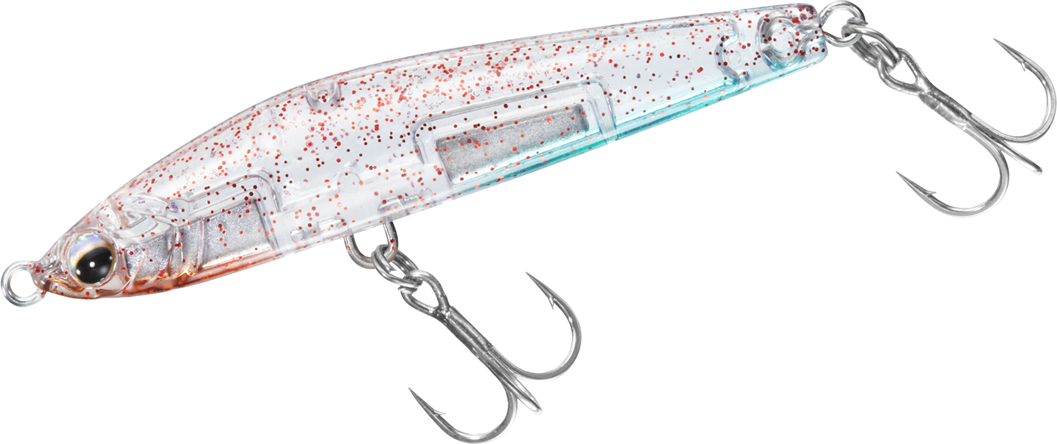 また、ボディ重量を重めに設定しているため、向かい風の場面や外洋に面したエリアでも、十分な飛距離を稼ぎ出し広範囲にアピールできる。ボディの振り幅を抑える反面、ローリングを向上させ、明滅効果による視覚的なアピールを高めたため、スリムなボディながらアピール力は十分。