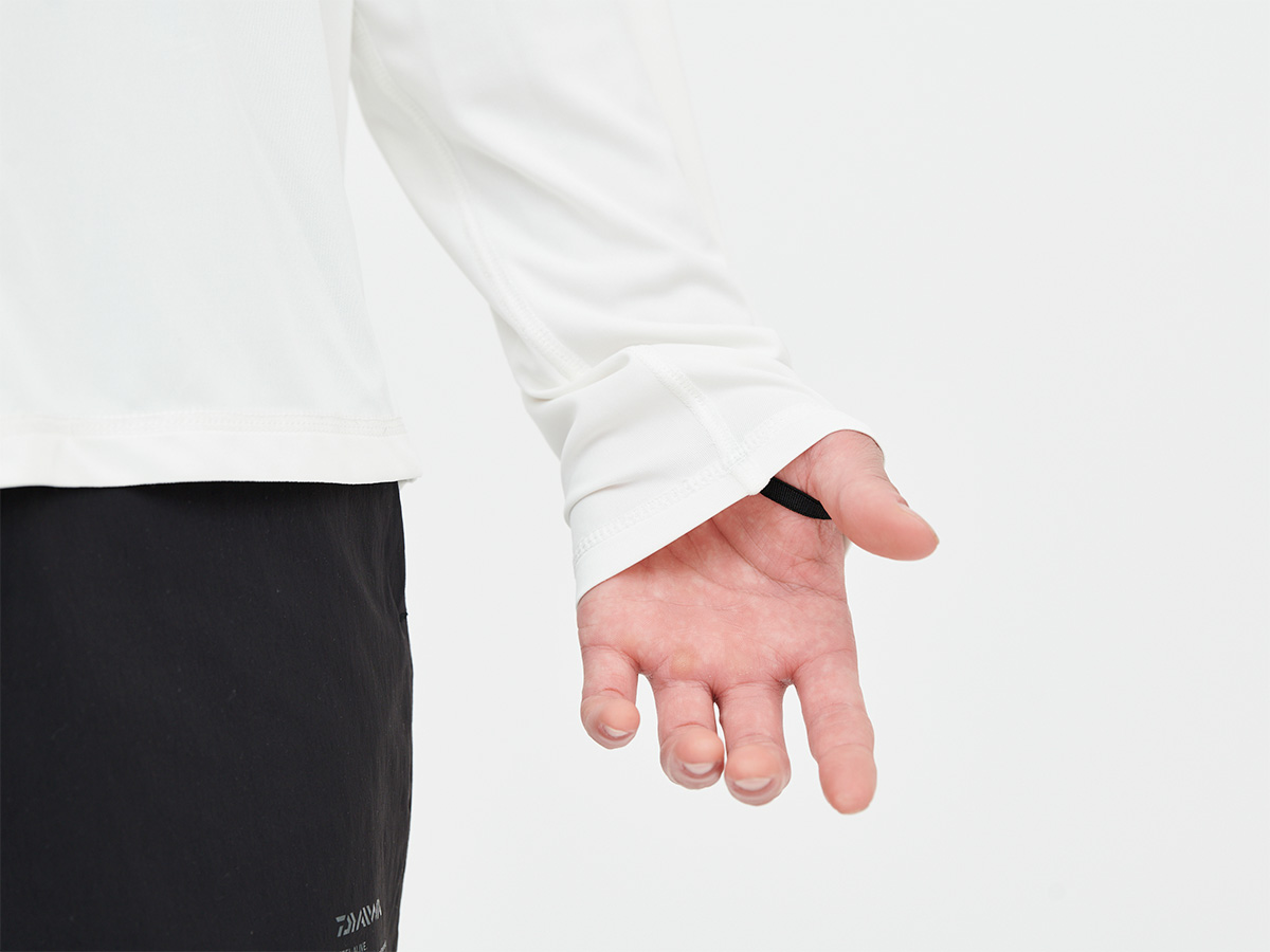 袖口には、キャスティングなど、腕を激しく動かしても袖先がめくれあがることを防ぐフィンガーループ付き。