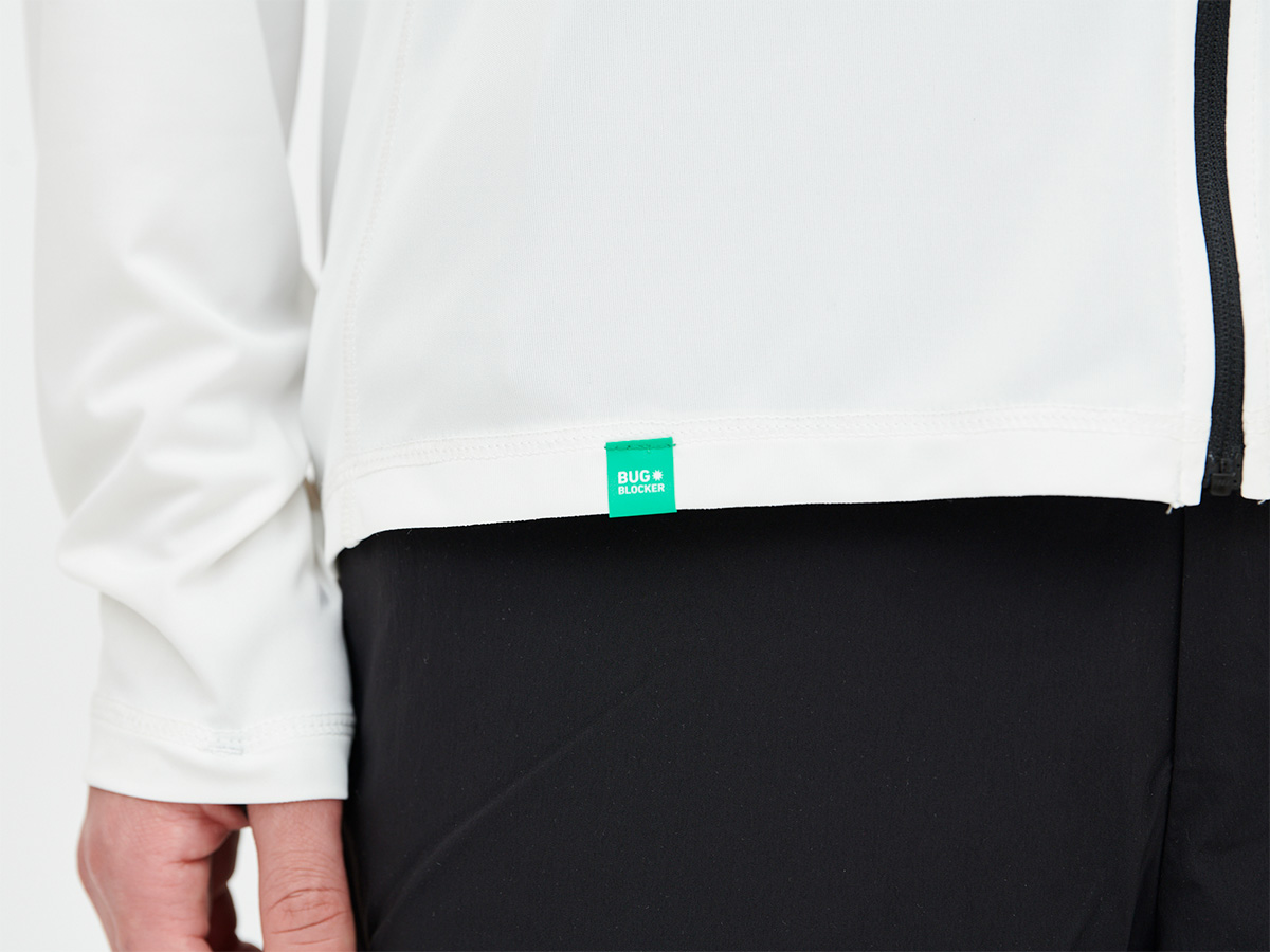 「BUG BLOCKER」は飛来する虫が生地に寄り付きにくく、例え止まっても逃げていくため刺され難い効果を発揮する。