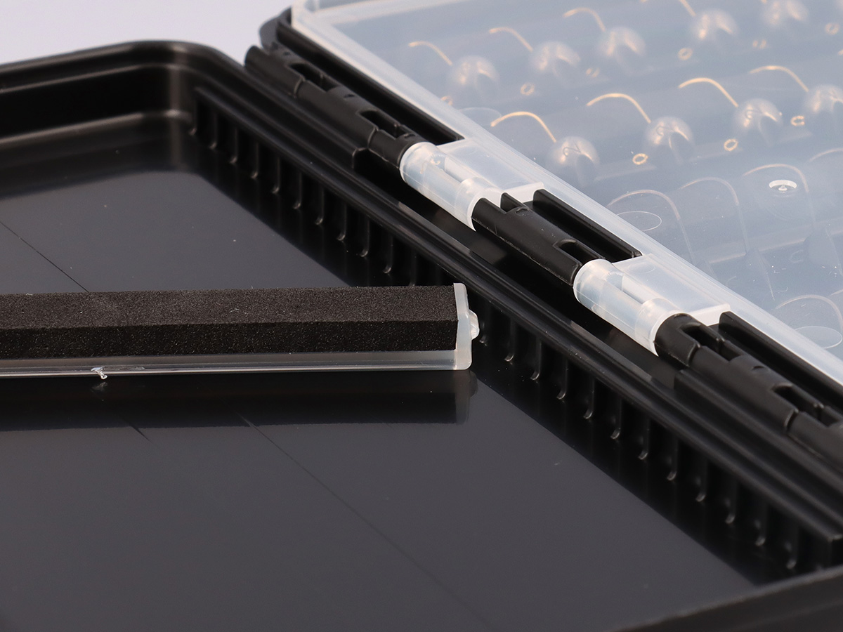 フックやルアーどうしの干渉を防ぐパーテーション付き