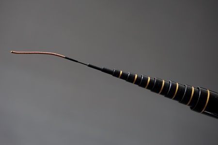 メガトップは繊維と樹脂が均一に分散するカーボンソリッドであり、どの方向にも同様の曲がりを見せます。結果、通常のカーボンソリッドに比べて強度が飛躍的に向上しました。これにより細径で柔軟、ハイテーパーな穂先を作ることが可能になり、手に響く感度はもとより穂先に表れる視覚的感度に優れるアタリのとれる穂先を実現します。