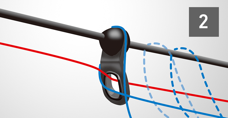 縦方向のI型形状と周方向のC型形状、塗装による二つの突起で水分によるラインのベタつきを軽減します。高耐久撥水スーパーコートとの相乗効果で、従来以上の快適なラインさばきを実現しました。