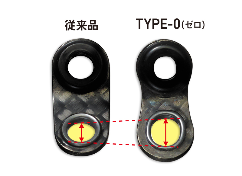 高強度セラミックNリングを0(ゼロ)形状にすることで、ガイドの内面積を大幅に拡大。