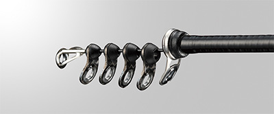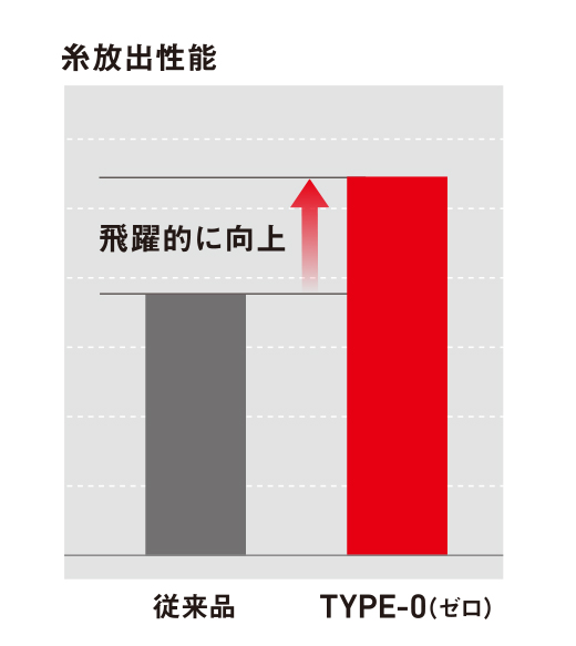 軽量・高感度を実現するAGS(エアガイドシステム)はカーボンフレームを採用しており、チタンと比較して約3倍の剛性をもつカーボンの特性から、ラインを通して伝わるわずかな信号をダイレクトにブランクに伝えます。それに加え、TYPE-0ではフレーム形状の変更により糸がらみトラブルを抑制し、楕円シェイプリングを採用することでフレーム形状の変更があっても変わらぬ放出性を手に入れました。