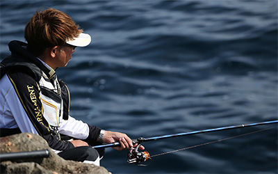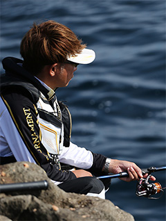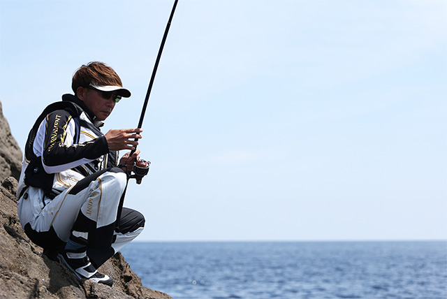 ルアーや投げ釣りのような「投げて引く」釣りや、船釣りのように「真下へ落として巻き上げる」釣りが多いなか、フカセ釣りは「仕掛けを潮に乗せて流す」という特異な釣りです。海には流れがあり、磯というフィールドには風がつきもの。ウキという小さな抵抗体を潮に乗せ、ポイントまで流すためには、風を受けて膨らんだ道糸の軌道を修正し、サラシや波に道糸が取られないよう糸フケや張り具合を適時調整する必要があります。これがラインメンディングというテクニックです。