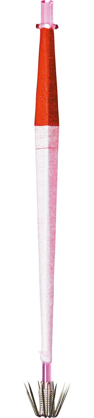 「GAS」タイプにはピンクケイムラボディに赤と白のガス糸巻きを施したコマセツノ付き。コマセツノのボディはピンクケイムラを使用。海水に濡れるとボディーカラーが浮き上がってイカにアピール。