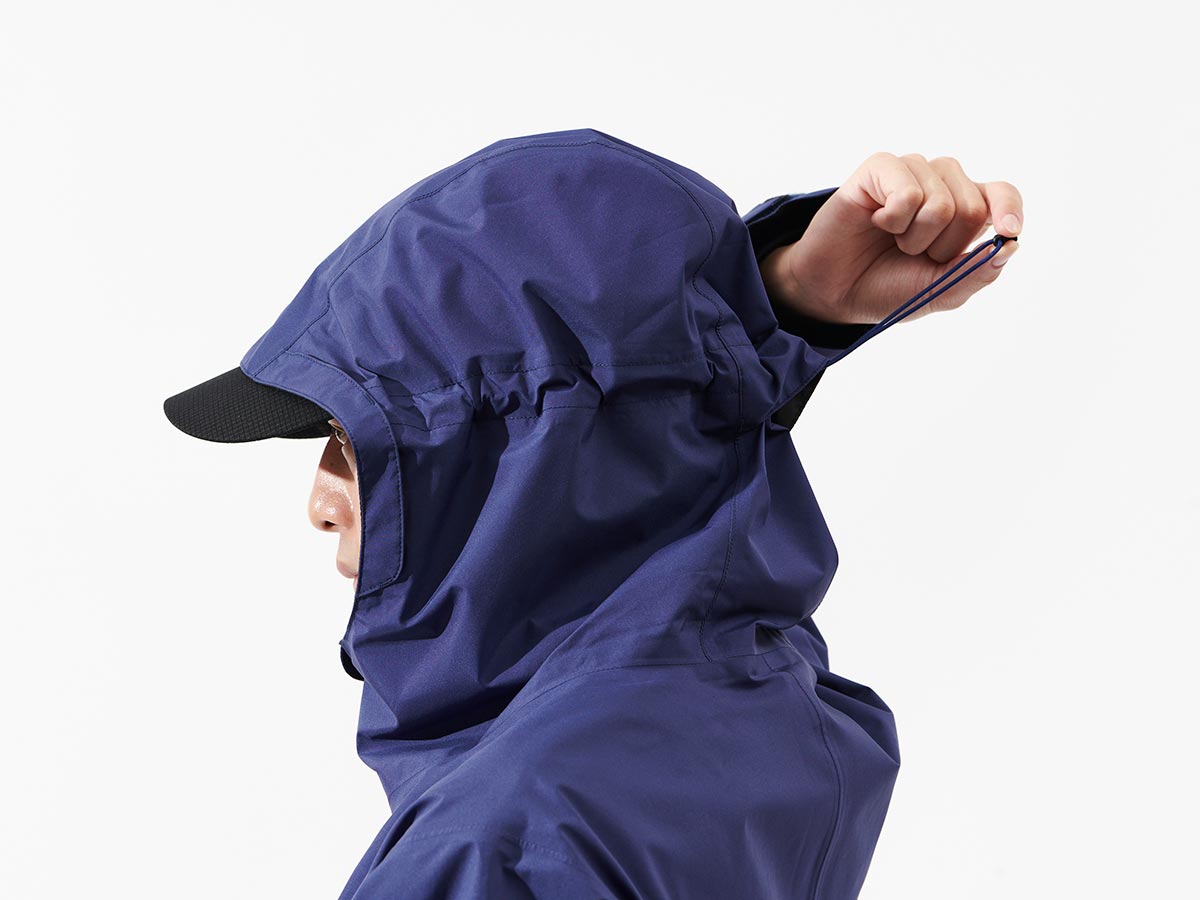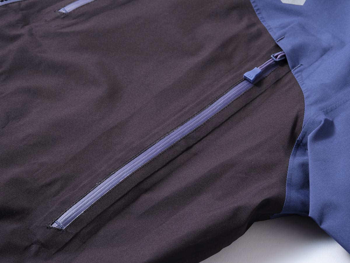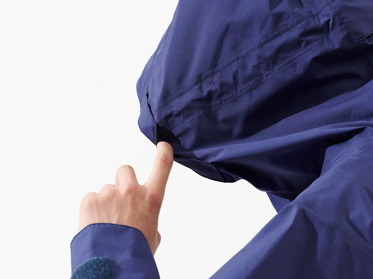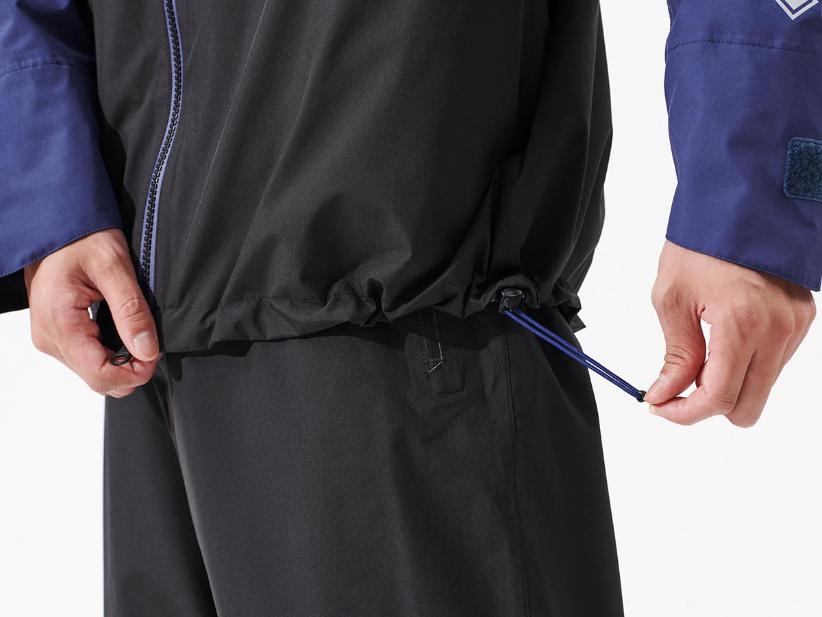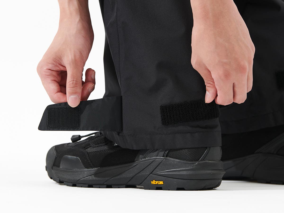 優れた防水性、防風性、透湿性を有する2層構造のGORE-TEX生地を採用することで、柔らかくしなやかな着心地。裏地にメッシュを配した二重構造とすることで、肌離れがよく、雨を肌で感じにくくなり、肌寒い時にも快適に着用可能。環境負荷の少ないフッ素フリー撥水剤を使用したモデル。フロントとポケットには止水ファスナーを採用し、防水性を重視。袖口から水の浸入を軽減する二重袖口採用。パンツポケットにも止水ファスナーを採用。裾にはベルクロを配し、絞り込むことが可能。