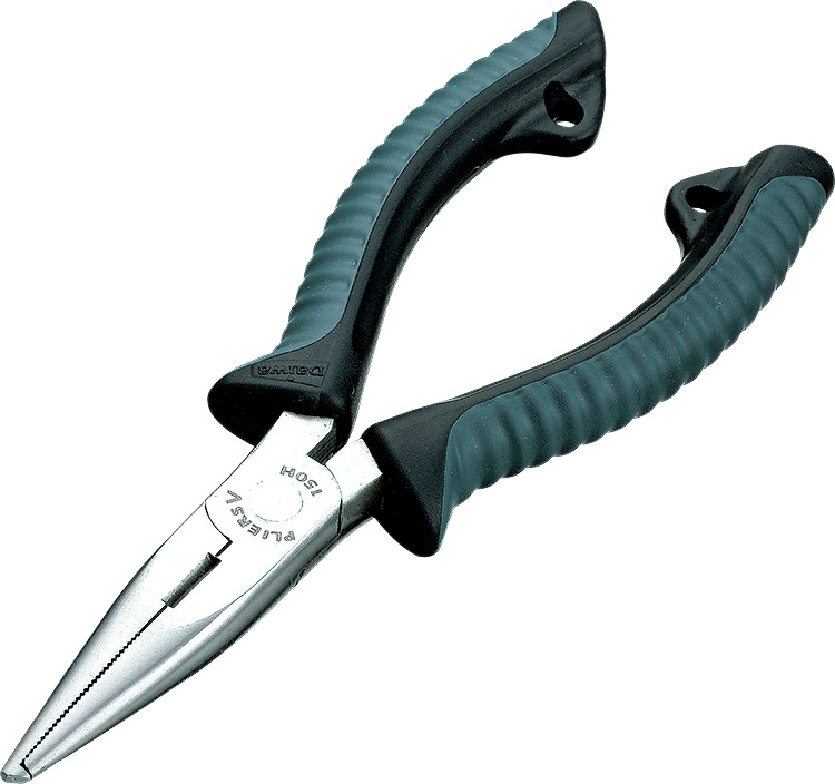 ロングノーズで大型フックを外す際に扱いやすく、曲がったフックの簡易矯正用スリット付き(220H)。