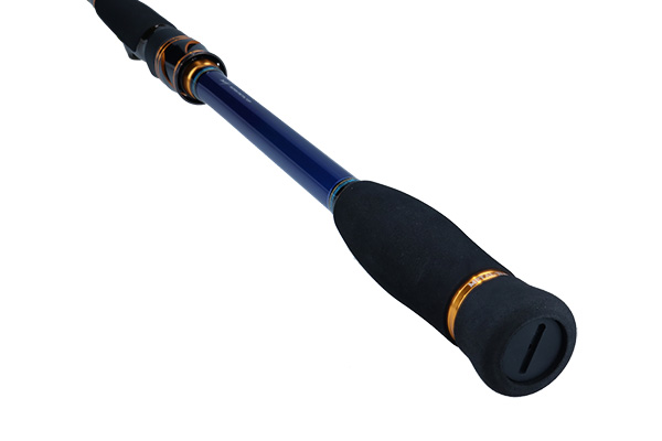 大型真鯛や青物とのファイト時はグリップエンド腰だめでのやり取りがマスト。グリップエンドの形状を握りこみやすく腰だめした際により安定して操作できるEVA形状を求め、創り上げた逸品。(S-300/350、MH-300/350)