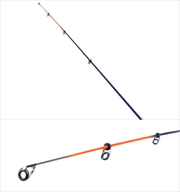 手感度だけでなく、目感度によるアタリもとらえる柔軟性に富んだメタルトップを採用。厳寒期など居食いする状況でもアタリを明確に表現する2つの感度を持つ死角のない穂先に仕上がっている。穂先は見やすいシルバーカラーをベースに、ガイドの糸巻き部にタフブライトコート塗装を採用したことで視認性にも優れる。(さぐりづりS-300B/350B)