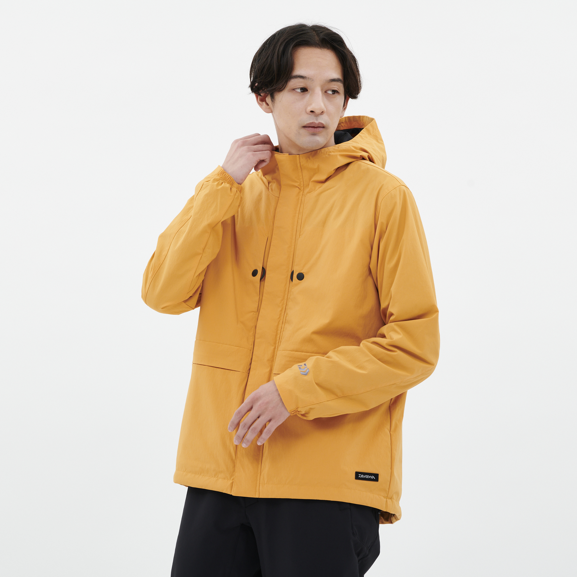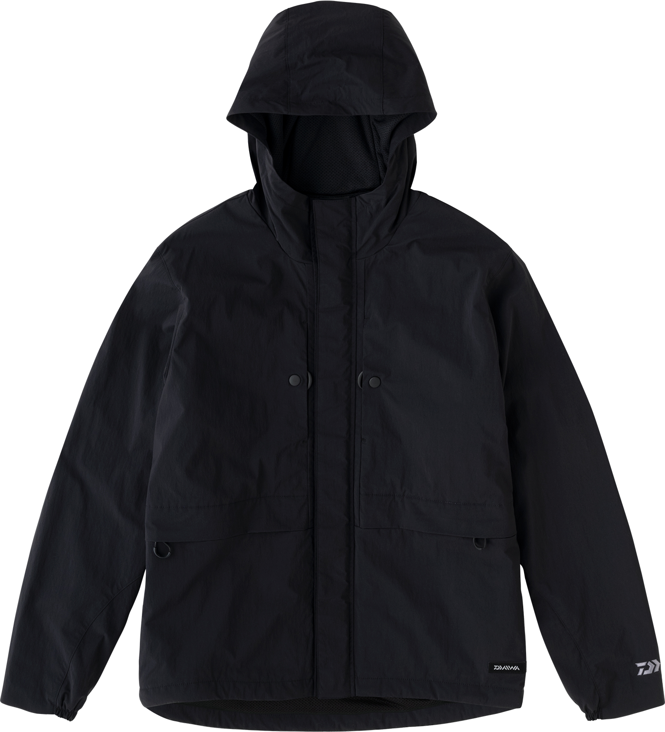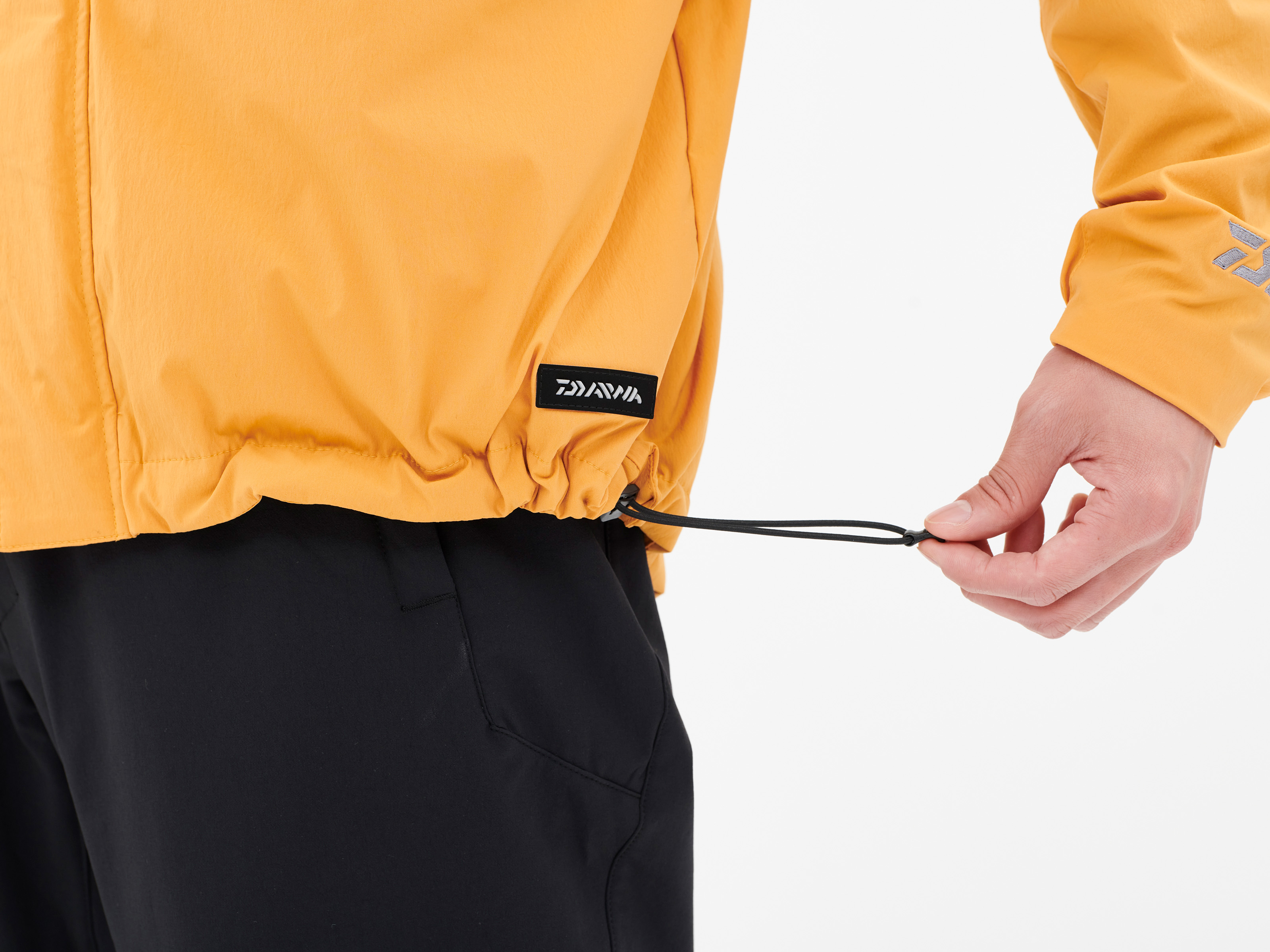 表地は撥水加工付与し、釣行時にも便利。胸ポケット部はグローブをした状態のままでも、手がかじかんだ状態の時でも操作しやすいループ付きタブを使用。