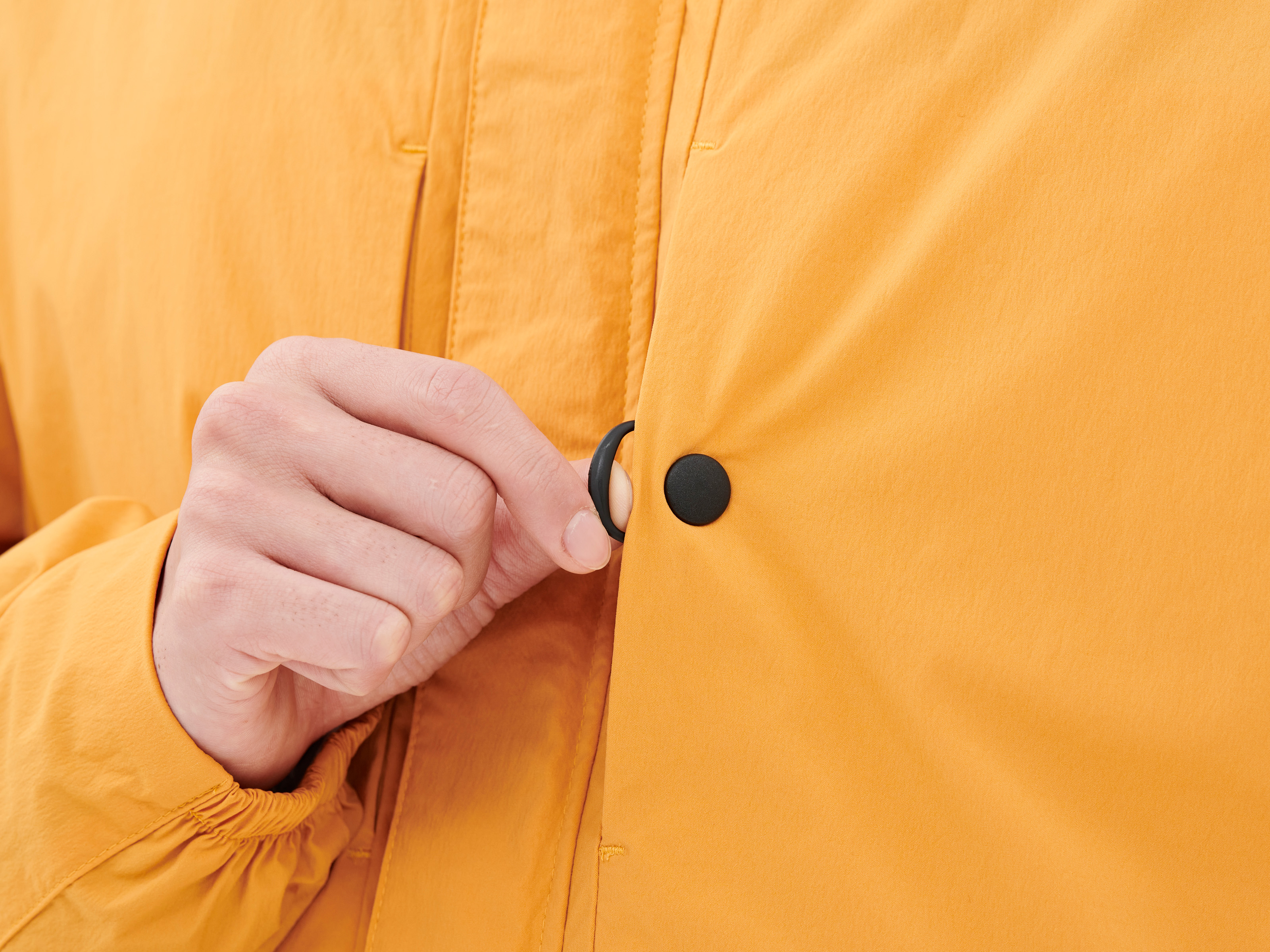 中綿と裏地を一体化した、嵩高で軽量な素材を裏側に使用することで保温性を確保したジャケット。