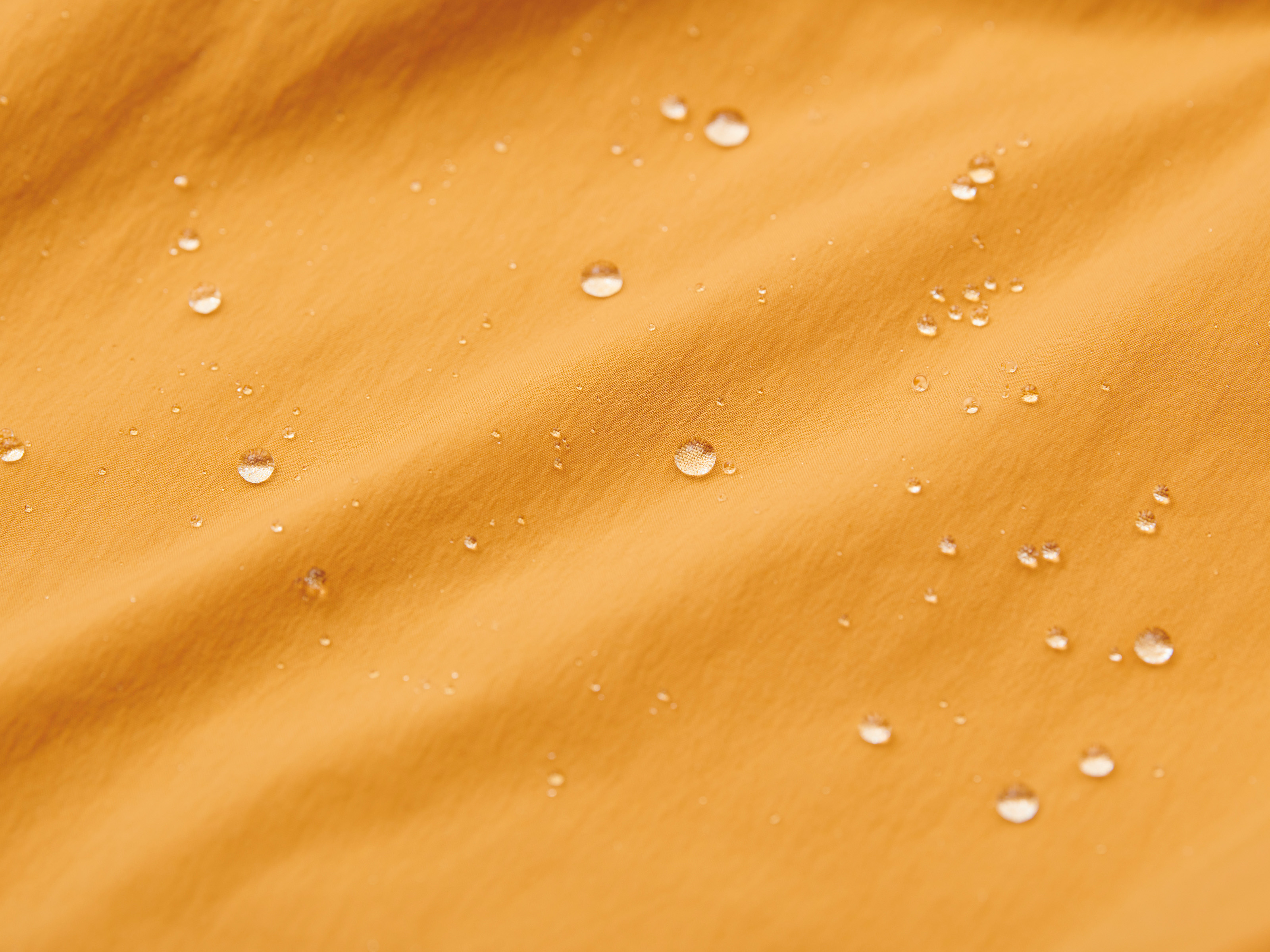 生地表面が水滴を弾き、水分を含みません。常に軽量&ドライにウェアの快適性を保ちます。