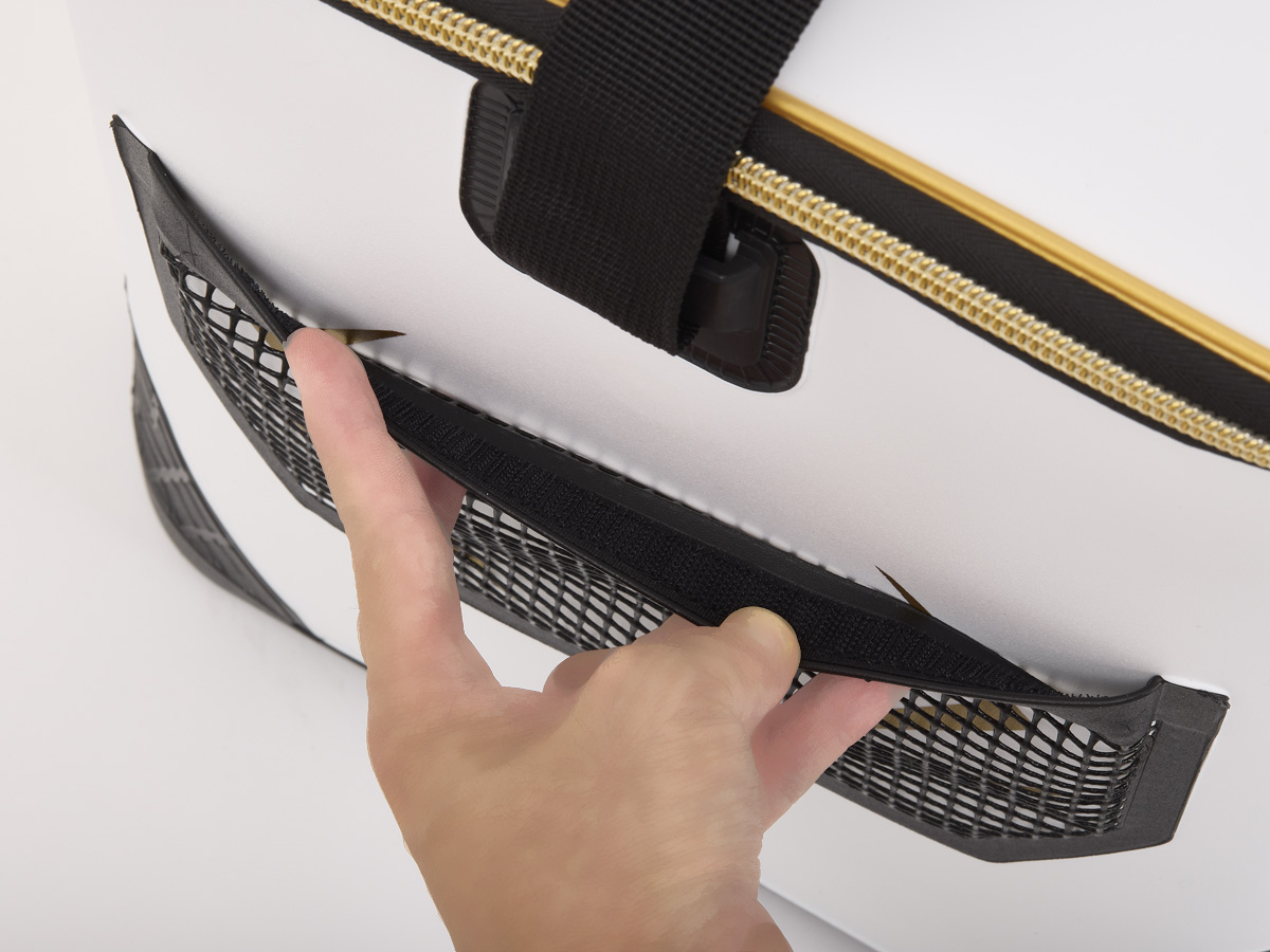 ■糸くずや餌袋のゴミを一時的に収納できるメッシュポケット