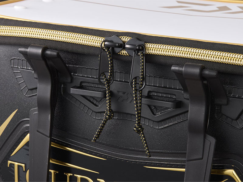 ■ゴム引手が開閉時の力を程よく分散しスムーズな開閉を実現。開閉時の引っ掛かりによるストレスを軽減。(写真はトーナメントバッカンFH40(D)です。)