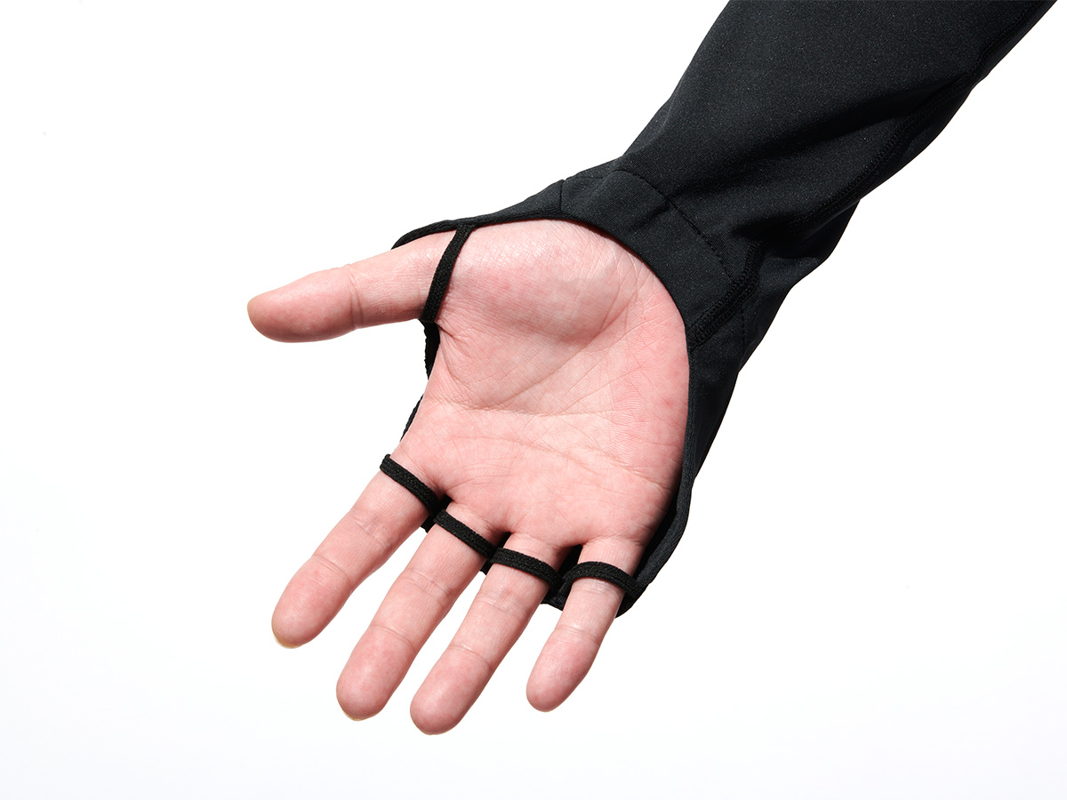 肌の露出を最小限に抑えた手甲付きアームカバー。