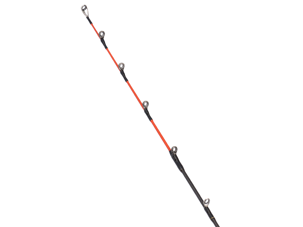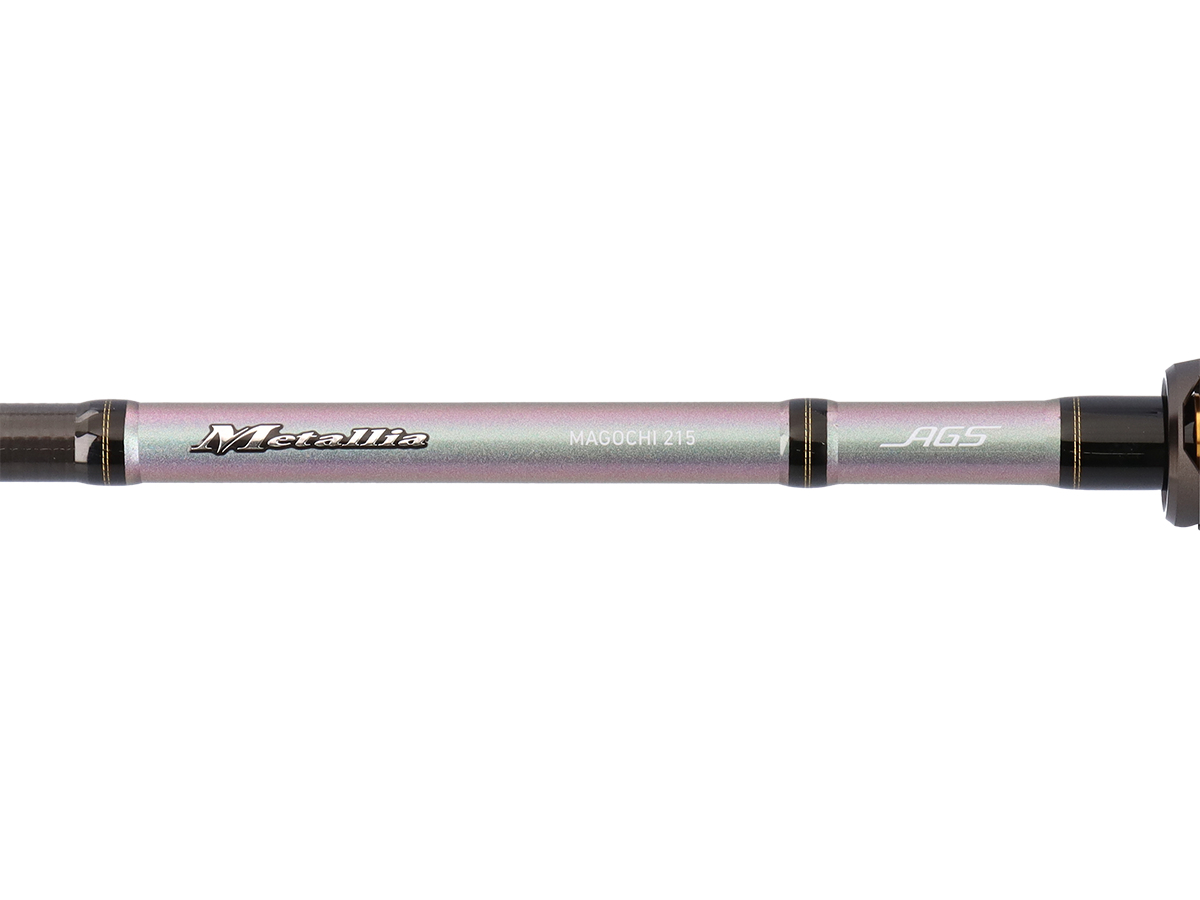 軽量・高感度を実現するAGS(エアガイドシステム)はカーボンフレームを採用しており、チタンと比較して約3倍の剛性をもつカーボンの特性から、ラインを通して伝わるわずかな信号を吸収することなくダイレクトにブランクに伝える高感度を有します。また、カーボンの軽量性によりロッド全体の軽量化にも貢献し、特に穂先部の軽量化につながることで感度の向上にも追加の効果が見込めます。
