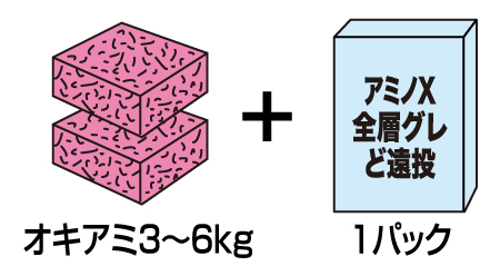 1.「アミノX 全層グレど遠投」1パックに対し、オキアミを約3~6kg用意する