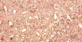 白く見えるのがムギを砕いた「砕ムギ」。粒状で深いタナまで届く。