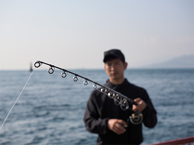 910H-3は感度と操作性を重視し、ティップ部分のガイドを軽量なシングルフットのKガイドにしています。大がかりなラインシステムを巻き込んでフルキャストすると破損の原因になります。ご注意ください。
