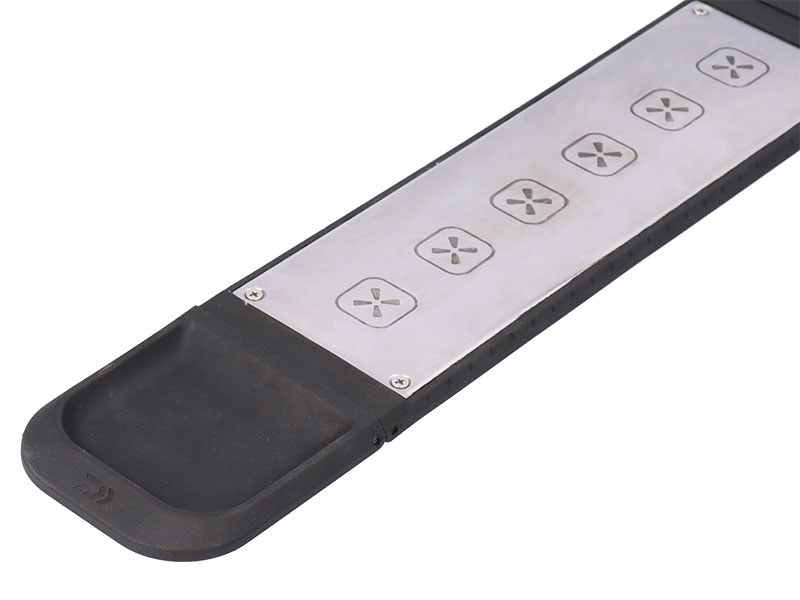 簡易スケールでリリースサイズ計測やエダスの計測が可能。付け餌やオモリを仮置き出来るトレー部分は、丸底形状で付け餌を拾いやすく、汚れが溜まりにくくて落としやすい構造。※トレー部分はオモリや付け餌の一時的な仮置き用です。船の揺れや風等により落下の恐れがありますので、移動中は使用しないでください。