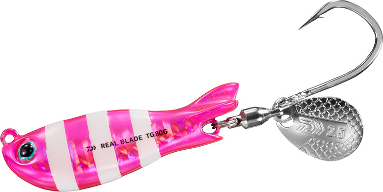 リアルブレードTG 80G ピンクゼブラ | 53.5 | 80 | ブレードジギング用 | タングステン | 管付ムロアジ#1/0 | 3,400 | 4550133373954 |