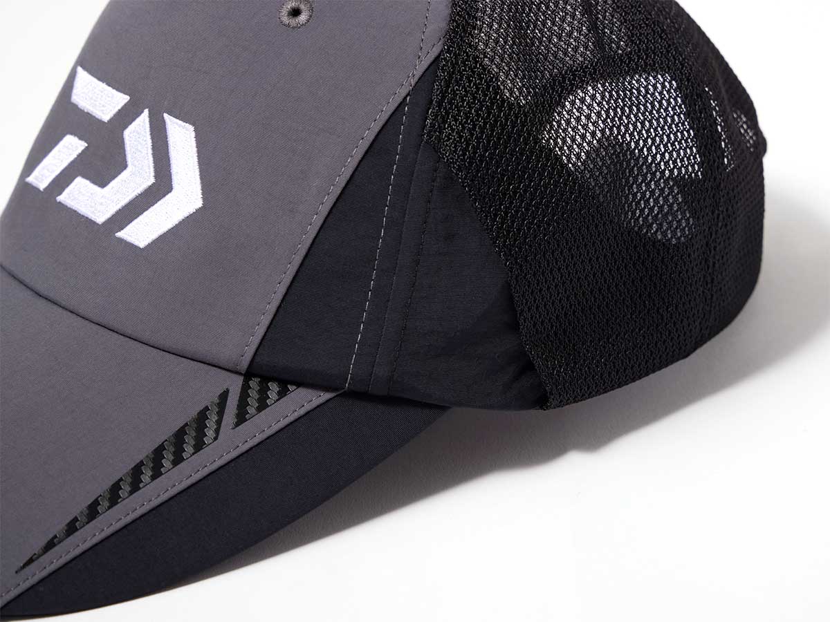 サイドに偏光グラスホルダー搭載。水面からの光の反射を抑えるツバ裏ブラック仕様。