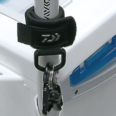 釣りの最中、手元に下げてサッと使える状態にしておくと便利なタオルやビニール袋、ピンオンリールなどの小物類が取り付け可能。