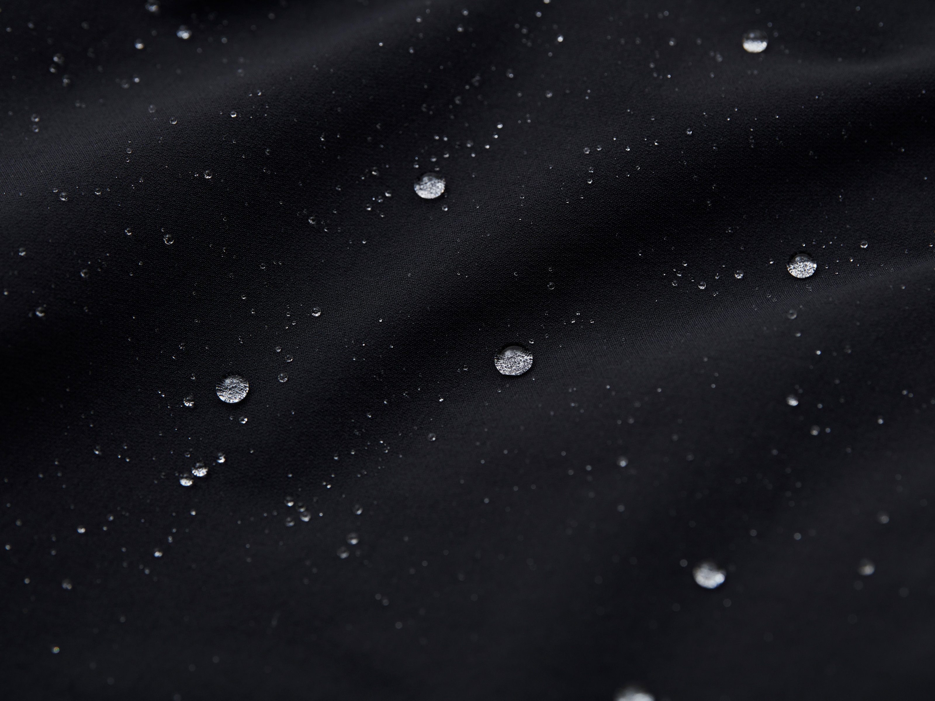 生地表面が水滴を弾き、水分を含みません。常に軽量&ドライにウェアの快適性を保ちます。