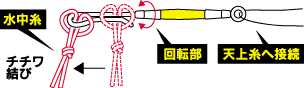 軽量、コンパクトなショートタイプのリリアン採用、仕掛けにリリアンの重さの影響を与えにくい。