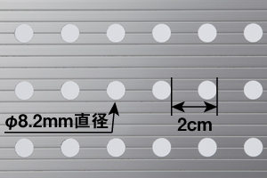 直径8.2mmの穴を施したパンチングメッシュ仕様。2cmピッチの穴位置なので簡単な長さを測ることができる。