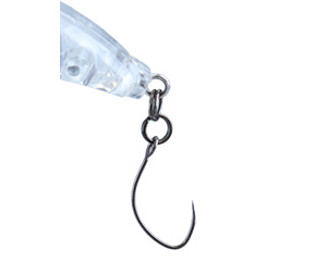 リアアイは縦アイになっており、ダブルリングにすることにより、フックの自由度を高め、バラシを軽減する。