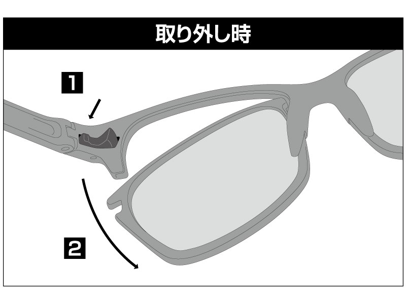1. レンズの内側の突起をフレームにはめこむ。