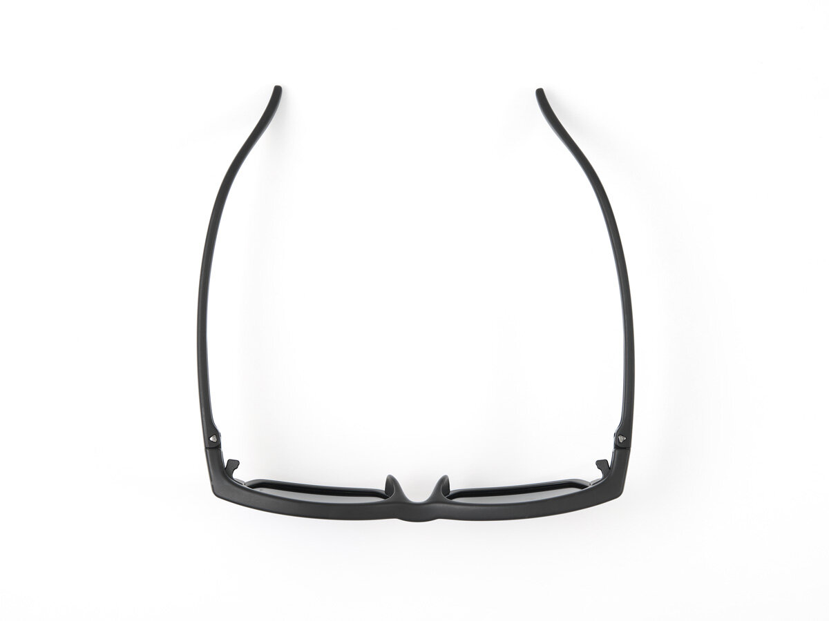 軽量でかけやすいプラスチックフレーム、傷が分かりづらいマットブラックカラーを採用。
