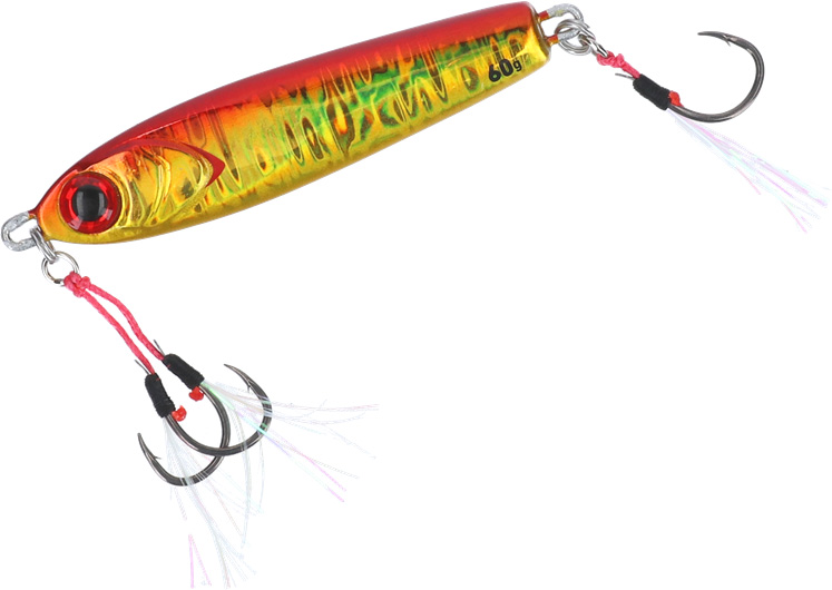 鯛ジギングで求められる性能を凝縮し、完成させた紅牙のフック付きメタルジグ