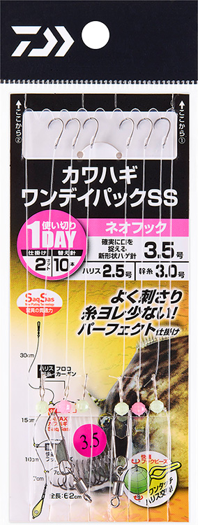 カワハギワンデイパック SS ネオフック 3.5 | サクサスフック搭載 | 2.5 | 3 | 2/10(仕掛け/替え針) | 62 | 1,130 | 4550133393228 |