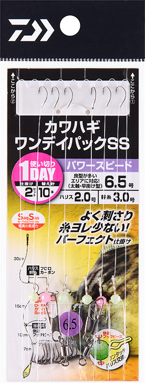 カワハギワンデイパック SS パワースピード 6.5 | サクサスフック搭載 | 2 | 3 | 2/10(仕掛け/替え針) | 62 | 1,130 | 4550133393174 |