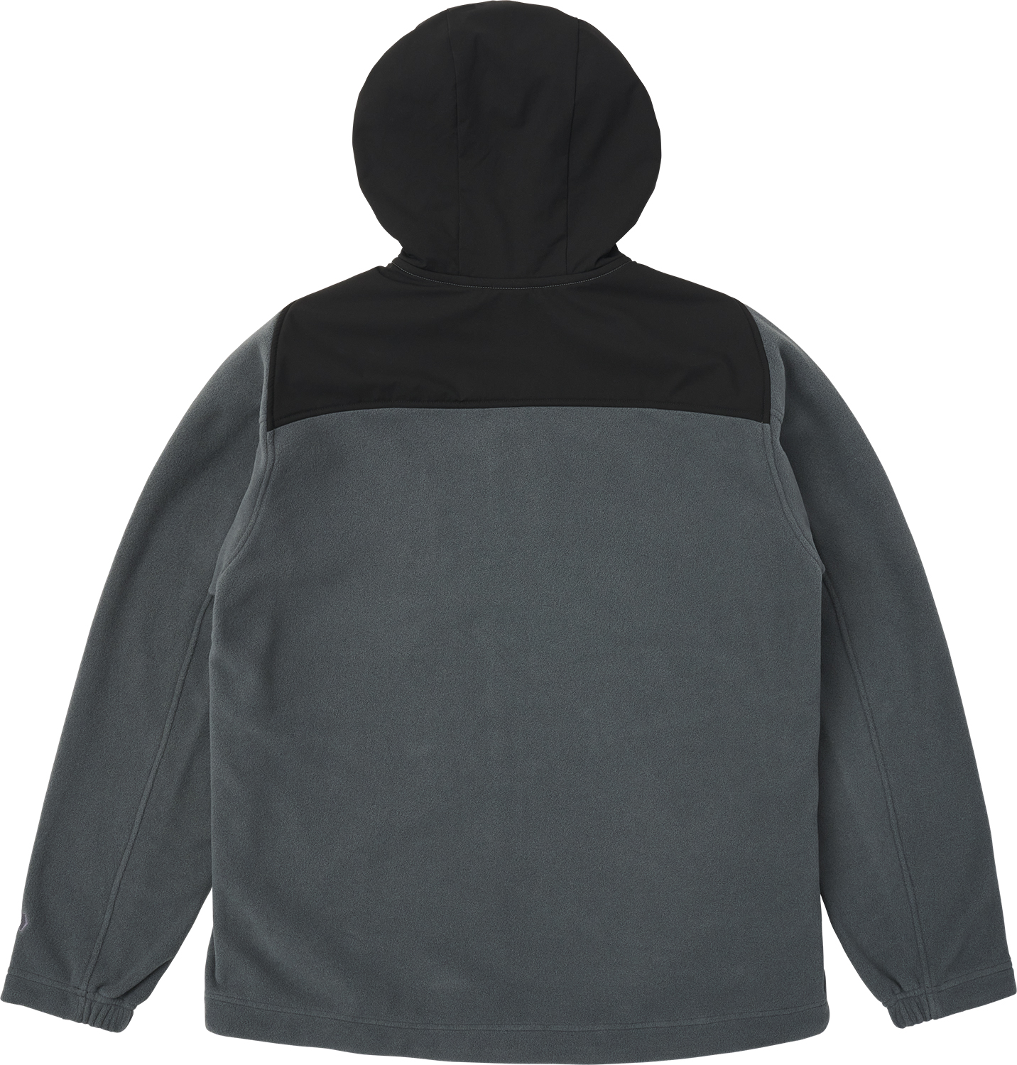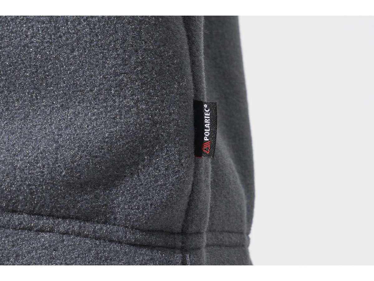 ストレッチ性に優れ、身体にフィットし、動きやすいPOLARTEC®フリース採用。インナーとしても、アウターとしても2WAYで使用可能なフルジップ仕様。レインウェアと重ね着した際に濡れやすいフード周りと、特に擦れやすい肩周りには撥水素材の補強を使用。胸元にはベストを着用していてもアクセスしやすい縦型のポケットを搭載。裾にはスピンドルゴムを配し、冷気を防ぎたいときに絞ることができる。