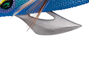 シンカーの役割は、ダートの安定性、フォールの安定性、潮噛みの良さ、飛行姿勢の安定性をつかさどっておりエギの中で極めて重要なパーツである。形状、重心の位置を研究し割り出した最適な形状。