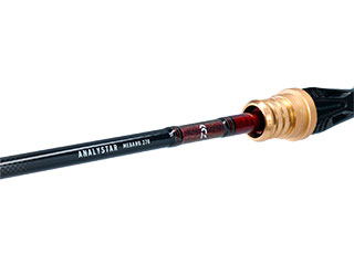 リールシートは操作性と軽量性、感度を求めてエアセンサーシートを搭載。カーボン繊維が見えるクリア塗装仕上げ。アナリスターにおいても妥協のないパーミング性能を目指した。