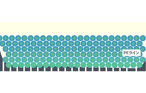 潤滑剤の濃度が高い為、PEラインへの付着量UP。また、シリコーンの分子量を最適化する事でPEラインへの高い浸透性も実現。