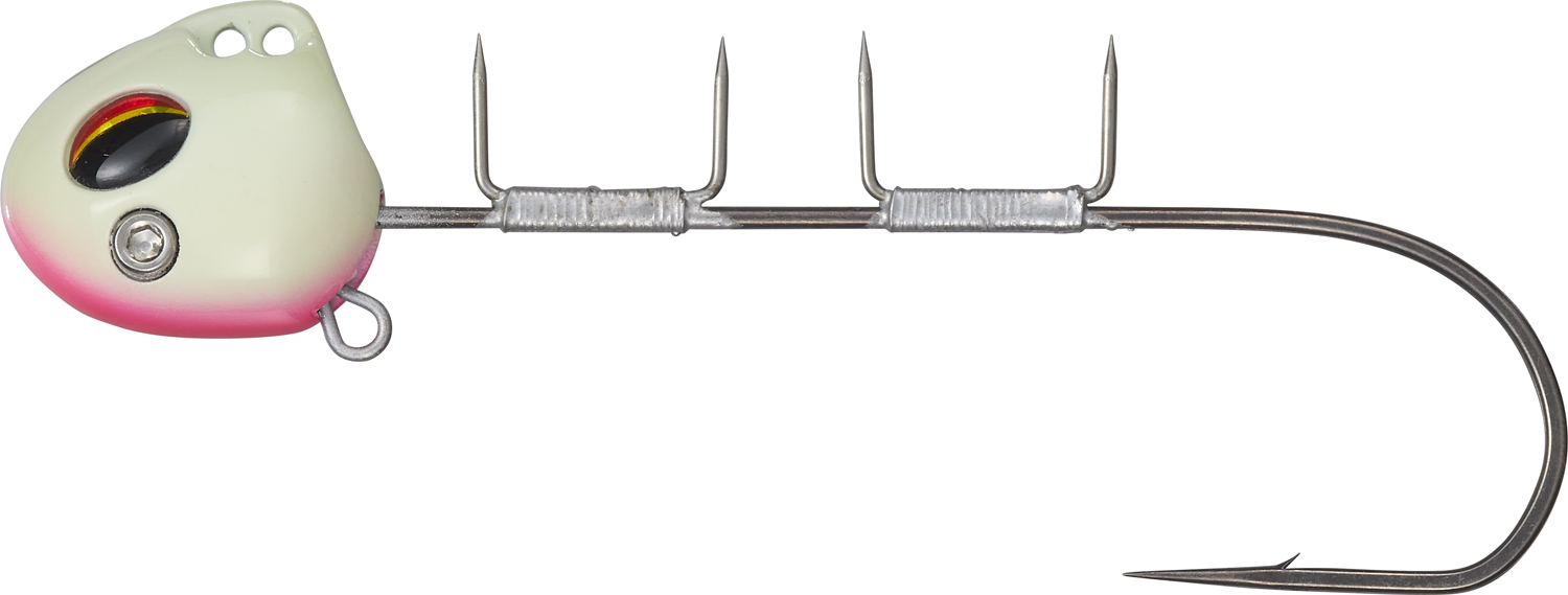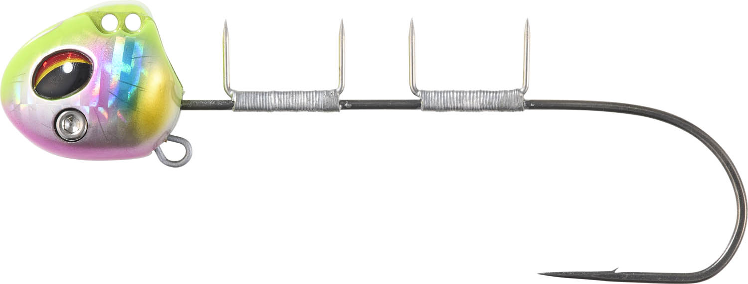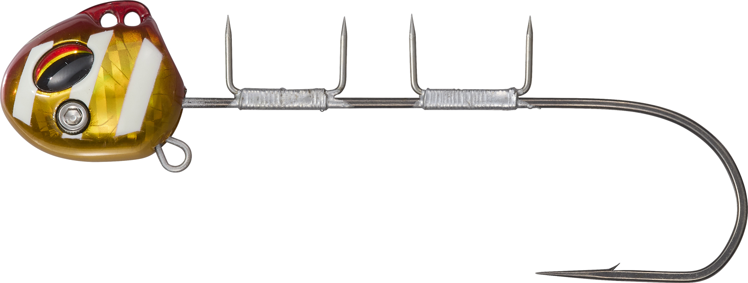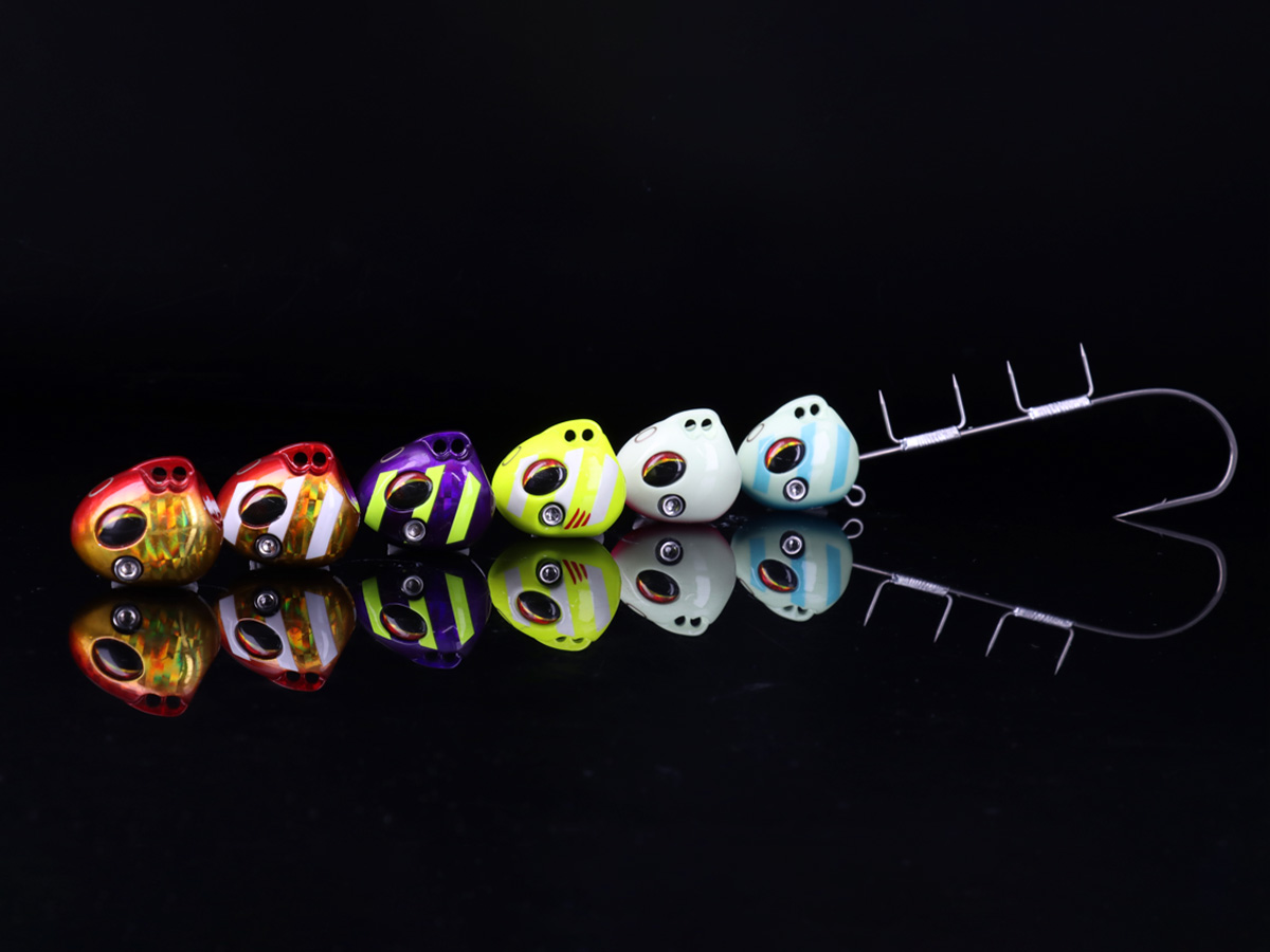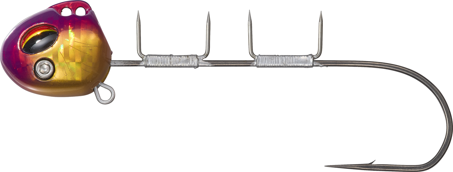 圧倒的なフォールスピードを実現した独自フットボール型ヘッド。海中をほぼ垂直落下で狙い棚を直撃します。