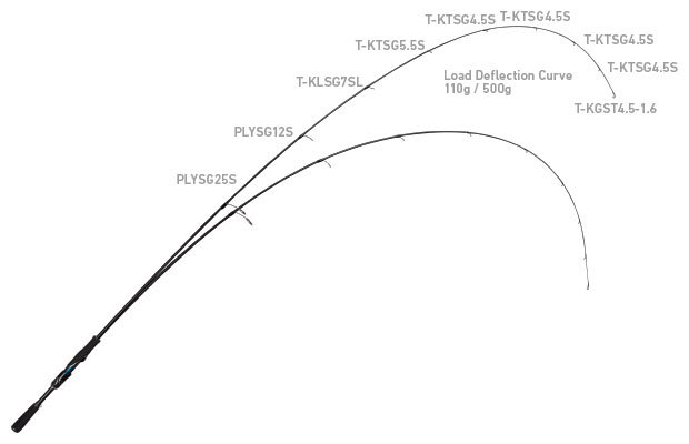 リズミカルにジグヘッドやノーシンカーを踊らせるミドスト及びホバストも守備範囲。前述したテーパーデザインは、竿先だけを振動させ、1点に集中したベンドが受ける振動をSVFナノプラスが手元へと明確に伝達。優れた感度を導き出している。