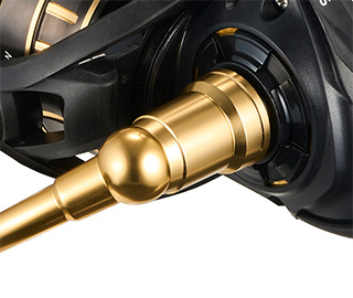 高負荷の巻取りでもハンドルガタが出ない、ソルトルアーゲームに最適な「ねじ込みハンドル」を採用。