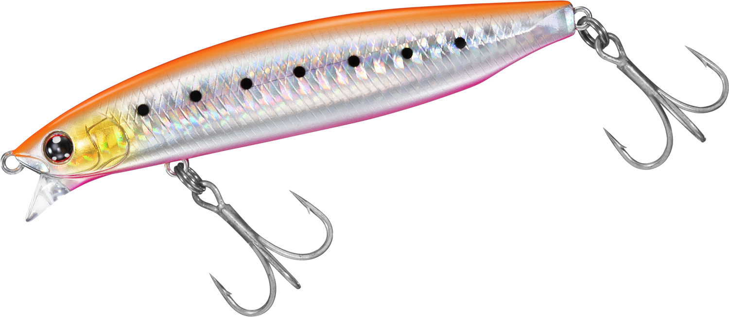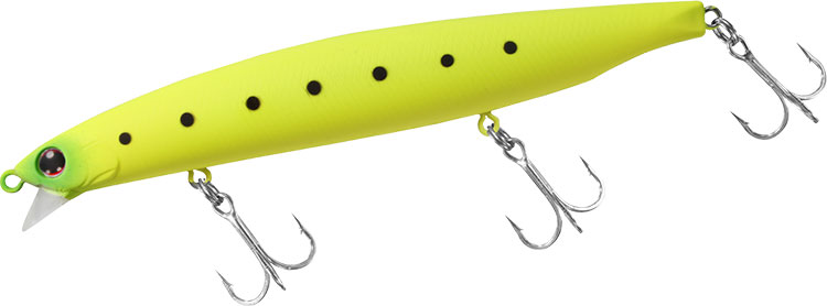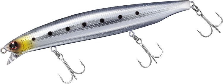 稚鮎やイナッ子などベイトが小型のときに最適な95mmサイズシャローランナーミノー。干潟、河川の岸際など水深の浅いステージや、シーバスの活性が高く浮き気味のときに効果的な最大50cmダイブ仕様。アクションもより大人しめのスローロールセッティングとすることで、干潟ではクリアウォーターでも見限られにくバチパターンにも対応可能。流れの強いリバーゲームに於いても、流れの中で泳ぎすぎず弱ったベイトフィッシュのアクションを演出できる。エアロボディ化+大型ウエイト搭載によりクラス最高峰の飛距離を実現。「MAGLOCK Ver.S+R」搭載により、立ち上がり性能、アクション安定性も大幅に改善!