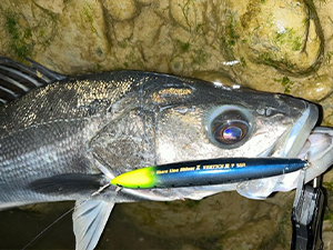 NEWバーティスR125F-SSRは、マグロックVer.S+ Rにより70m、60m先でもウェイトの戻りは心配はなく、着水後から弱々しくもベイトライクなロール主体のアクションで違和感無くシーバスへアプローチできます。