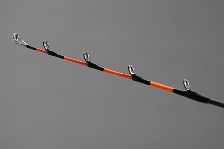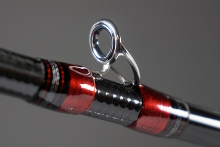 軽量・高感度を実現するAGS(エアガイドシステム)はカーボンフレームを採用しており、チタンと比較して約3倍の剛性をもつカーボンの特性から、ラインを通して伝わるわずかな信号を吸収することなくダイレクトにブランクに伝える高感度を有します。また、カーボンの軽量性によりロッド全体の軽量化にも貢献し、特に穂先部の軽量化につながることで感度の向上にも追加の効果が見込めます。