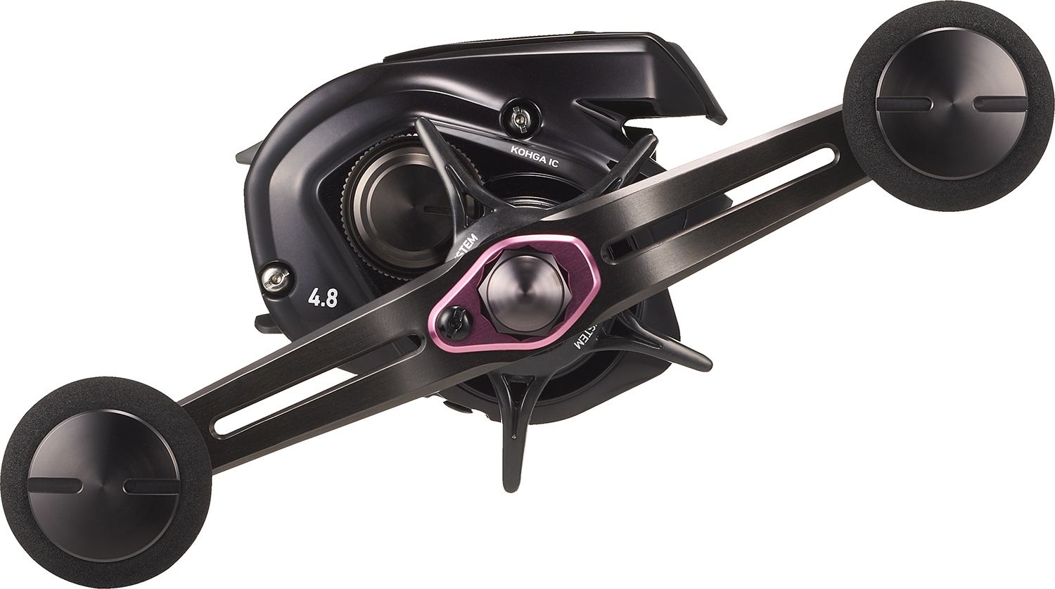 低負荷~高負荷まで滑らかな回転性能が必要となるタイラバシーンに対応するため、「HYPERDRIVE DESIGN」の要である「HYPERDRIVE DIGIGEAR」に手を加え、ギアの歯幅UPによる回転性能の向上を行った。また、無風時や潮の流れが無い状況でより広く探るための軽いアンダーキャストにも対応する遠心ブレーキを搭載した。幅広いシーンに対応可能な26紅牙IC150はタイラバシーンをリードし続ける。さらに様々なシチュエーションに対応するために3種のギア比展開とハンドル仕様をブラッシュアップ。タイラバをより快適に楽しむためのこだわりを凝縮したタイラバ専用機。