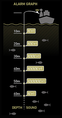 デプス(深度)アラーム(1回/3回/5回/OFFの選択方式)※出荷時はフォール5回、アップ1回設定