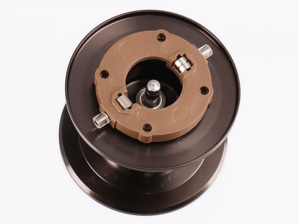 内部構造を高剛性、高精度でしっかりと支え、精緻な巻き心地とパワーを生む筐体システム。要であるフレームに金属素材を用いることが必要条件で、サイドプレートやセットプレートとの組合せにより、基本性能をさらに長く発揮し続けることを可能にします。